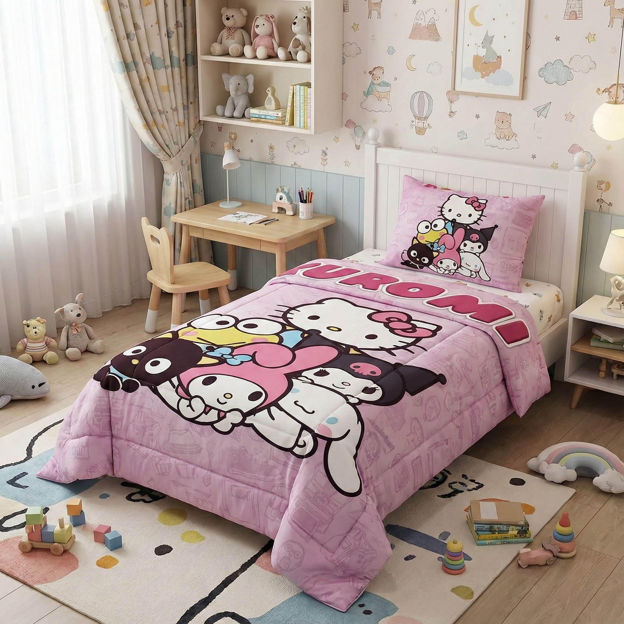رویای هر اتاق خواب دخترانهای را با روتختی هلو کیتی و دوستان لاولی اسلیپ محقق کنید! این طرح بینظیر، تمام شخصیتهای محبوب دنیای سانریو (Sanrio) از جمله هلو کیتی، مای ملودی، کورومی و کیروپی را در یک قاب شاد و دلنشین جمع کرده است.