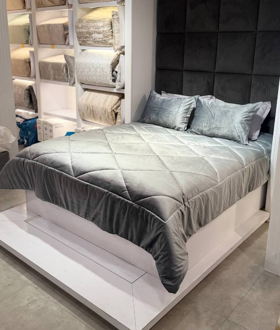 رنگ طوسی روشن این محصول، در عین سادگی و مینیمال بودن، جلوهای مدرن و ژورنالی به اتاق خواب میبخشد و با هر طیف رنگی از مبلمان و پردهها بهخوبی ست میشود. دوخت الماسی منظم، ظاهری مرتب و لوکس ایجاد کرده و حس یک فضای هتل ۵ ستاره را به خانه شما میآورد.